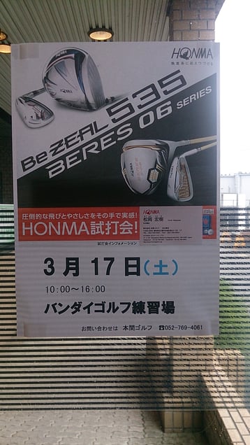 バンダイゴルフクラブ練習場にて「HONMA」の試打会を行います。ご興味のある方は、ぜひお越し下さい。