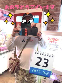 バッティングドームみくもでは現在「任天堂 Switch」が当たる2000円ガチャを設置しておりますが、6/23に初のSwitchを当てていただきました☆