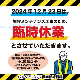 2024年11月23日は、場内設備メンテナンス工事実施のため終日休業とさせていただきます。