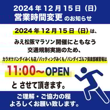 2025みえ松阪マラソンに伴う営業時間変更のお知らせ