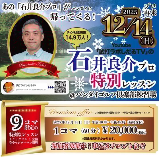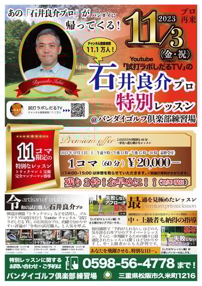この機会にぜひ、バンダイゴルフ倶楽部練習場へお越し下さい!