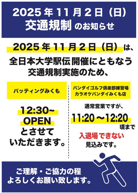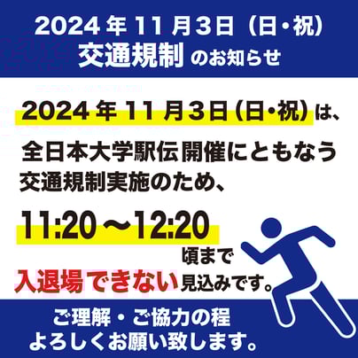 駅伝開催に伴う営業時間変更等について
