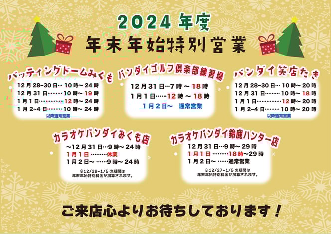 2025年末年始営業のご案内